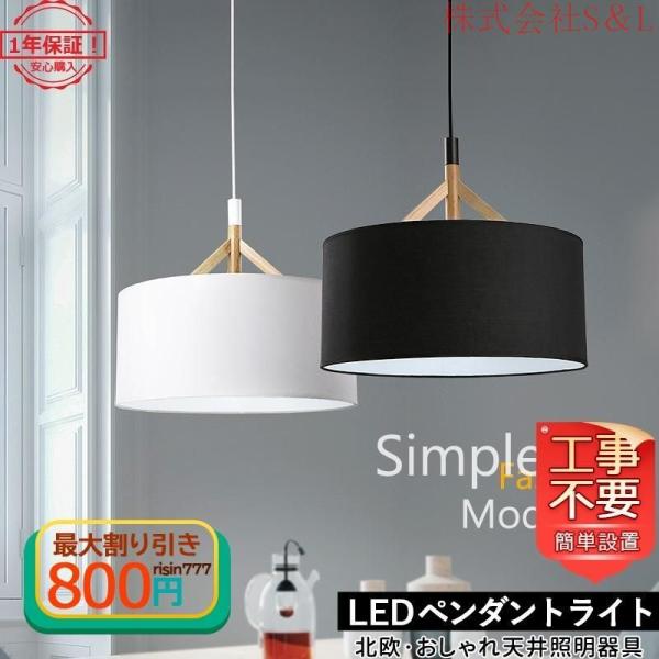 DIY ペンダントライト 照明器具 おしゃれ 北欧 LED 天井 吊り下げ 和風 和室 オシャレ シンプル 玄関 室内 S&L 木+布 おすすめ 1灯 リビング キッチン 事務所