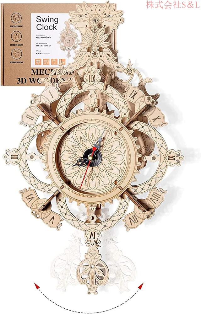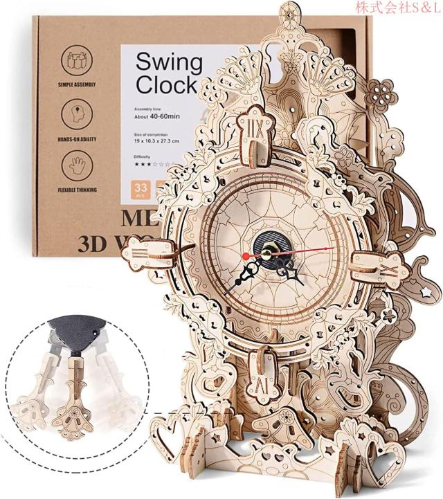 立体パズル木製3d振り子時計置時計掛け時計模型レトロメカニカルクロックキット機械式モデルキットおもちゃS&L子供大人向けDIY組み立て玩具インテ