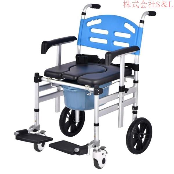 多機能車椅子昇降式アームレスト付き便器椅子ポータブルトランスポートチェア高さ調節可能な入浴チェアS&L折りたたみ式トイレチェア高齢者、妊娠中の女性、お