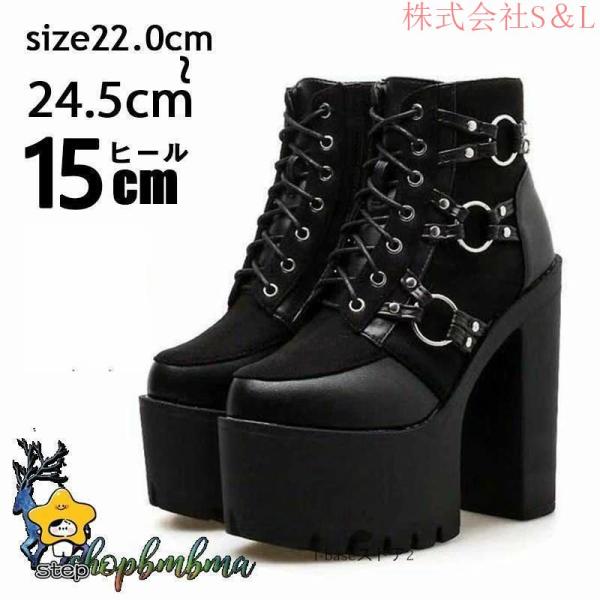 15cm 厚底 ショートブーツ ブーティ 太ヒール ベルト飾り レースアップ 編み上げブーツ カジュアル コスプレ イベント S&L仮装 パーティー ハイヒール 厚底靴