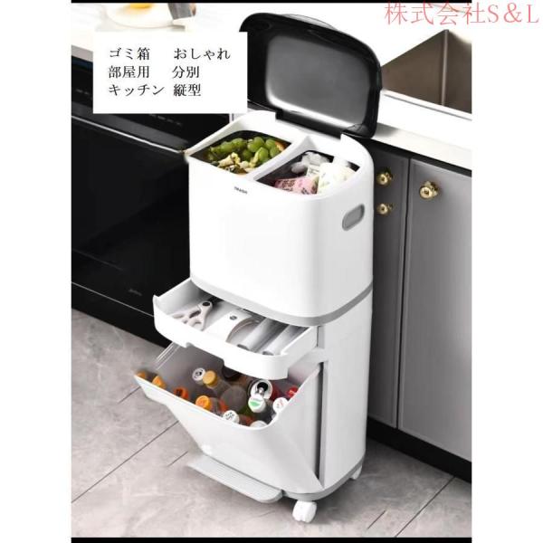ゴミ箱 おしゃれ 分別 キッチン 縦型 スリム フタ付き 2段 キャスター付き株式会社S&L 蓋付き ダストボックス アイデア 部屋用 40L 臭わない