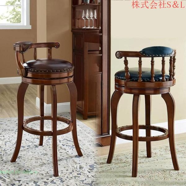 バースツール無垢材60?70?80cm、1個快適ハイチェア、アンティークウッドスツール丸型S&L椅子背もたれ、カウンターチェア回転360°、安全で無臭防水、組み