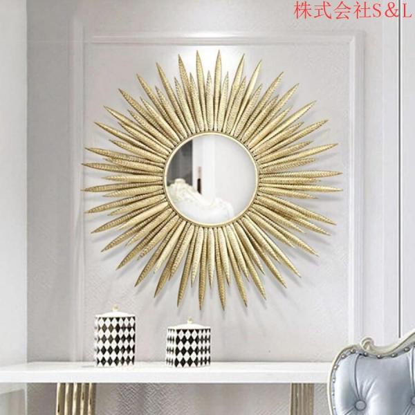 鏡 ミラー フェザーサン 羽根 太陽 70cm 高級 ホテル ゴールドフレーム おしゃれ 壁掛けミラー株式会社S&L 壁掛け おしゃれ デザインミラー シンプル オシャレ