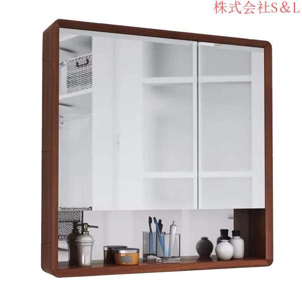 オーク材のバスルームミラーキャビネット壁掛けミラーキャビネット棚付きバスルームミラー洗面化粧台収納キャビネット無垢材収納キャビネット (Color : Brown)