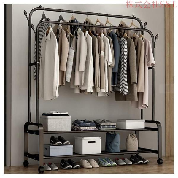 業務用ハンガーラック ストロンガー パイプハンガー ダブル 株式会社S&L 耐荷重100kg 頑丈 丈夫 ハンガーラック 2段 棚付き キャスター付き 安定性