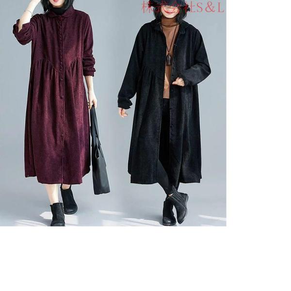 コーデュロイシャツワンピースミモレ秋冬レディースシャツワンピ長袖ミモレシャツスキッパーワンピース春おしゃれS&L大きいサイズゆったりオフィス