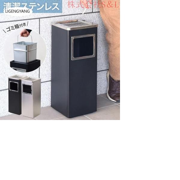 10/5限定★最大300円クーポン 灰皿 スタンド 屋外 屋外用 業務用 おしゃれ S&L 受け皿 吸殻入れ スタンド ステンレス ゴミ箱付き スリム 倒れにくい角型