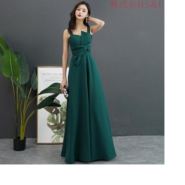 カラードレス グリーン 黒 白 赤 カクテルドレス ロングドレス パーティードレス 発表会 演奏会 ステージドレス イブニングドレス S&Lノースリーブ ファスナー