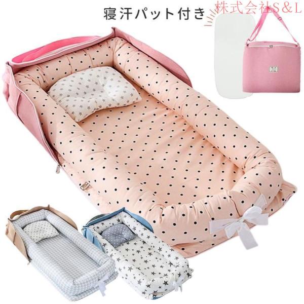 【汗取りパット付】ベビーベッド 折りたたみ 赤ちゃん ベッドインベッド ベビー ベッド クーハン ミニ 持ち運び 添い寝 ガード S&L寝返り防止ガードクッション