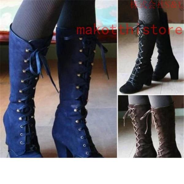 編み上げブーツ ゴスロリ 風 編み上げ 厚底 レザー調 ロング ブーツ レースアップ ゴシック ハイヒール 株式会社S&Lレディース ガールズ ファッション スエード