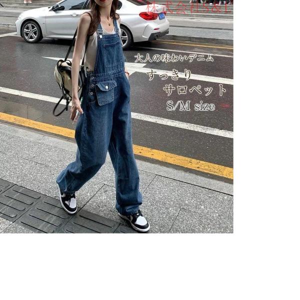 サロペットデニムレディースオーバーオールオールインワンジーンズデニムパンツパンツ大人コーデつなぎゆったりS&Lワイドストレート大人きれいめカ
