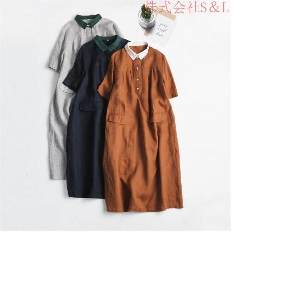 シャツワンピースロングワンピース綿麻レディースきれいめ春七分袖半袖夏S&L大きいサイズガーゼダブルガーゼワンピースロング綿麻ワンピミモレ丈A