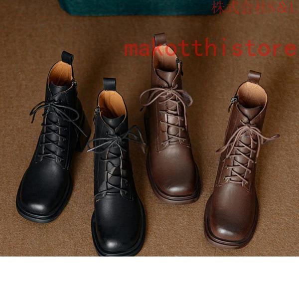 ブーツレディースショートブーツ編み上げブーツショート軽量編み上げレースアップ袴ブーツひも靴厚底S&L大きいサイズハイヒール疲れないブラック