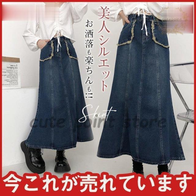 【キーワード】ロングデニムスカート Aライン 美しいシルエット マキシスカート デニム レディース ウェストゴム タイト ボトムス タイトスカート 大きいサイズ 無地 シンプル フリル ロング おしゃれ かわいい サロペットスカート マキシ丈 お洒落 ストレッチデニム ベイカー ベルト付 フレアーデニム 体型カバー ハイウエスト 着痩せ フレアスカート ミモレ丈スカート つぼみスカート ブルー オシャレ 綺麗 キレイ 楽ちん 楽チン 重ね着 着回し ロング丈 コクーンスカート バルーンシルエット ウエストゴム ポケット付き オトナ女子向け デニムスカート カジュアル 春夏秋 スリット Iライン ストレッチ ゆったり