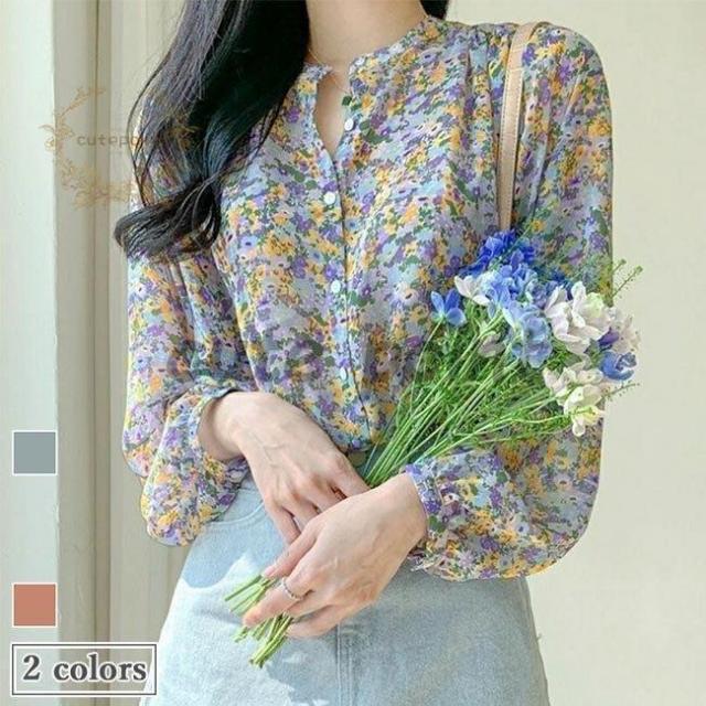 シフォンブラウス 花柄 レディース 長袖ブラウス 春 ブラウス ゆったり シフォン 花柄ブラウス レトロ シャツ 秋 トップス 薄手 お洒落