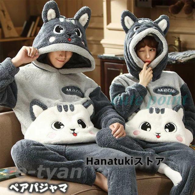 ペアパジャマ カップル 猫パジャマ 冬 着ぐるみ ペア パジャマ ルームウェア 大人用 可愛い ペアルック モコモコパジャマ もこもこ ふわふわ 動物 パジャマ 裏