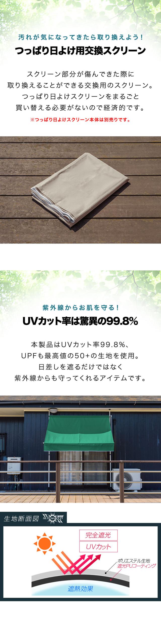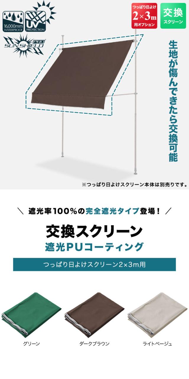 つっぱり日よけスクリーン用オプション 交換用スクリーン 幅2mサイズ用 完全遮光タイプ サンシェード 屋外 UVカット 耐水圧16,000mm 日除け 目隠し シェード 西日対策 窓 ベランダ ※スペアスクリーンのみ/日よけ本体別売 1年保証 送料無料