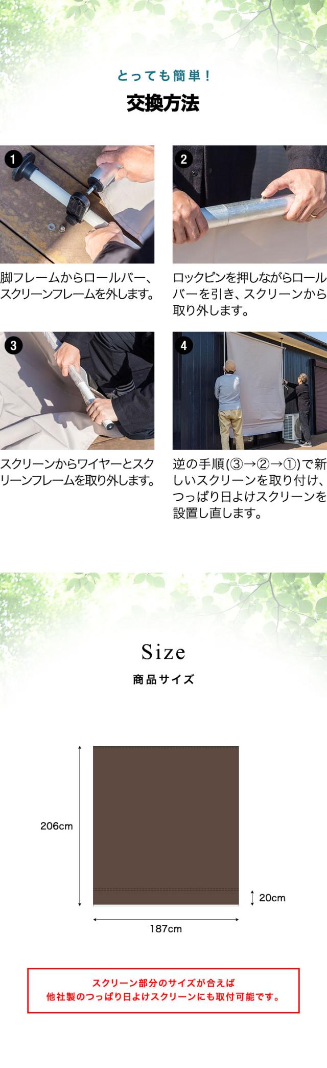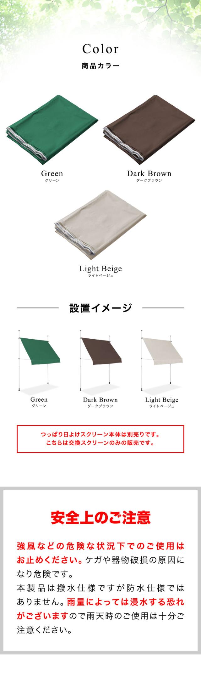 | 特記事項: ※つっぱり日よけスクリーン本体は別売りです。 ※スクリーン部分のサイズが合えば他社製のつっぱり日よけスクリーンにも取付可能です。 |
