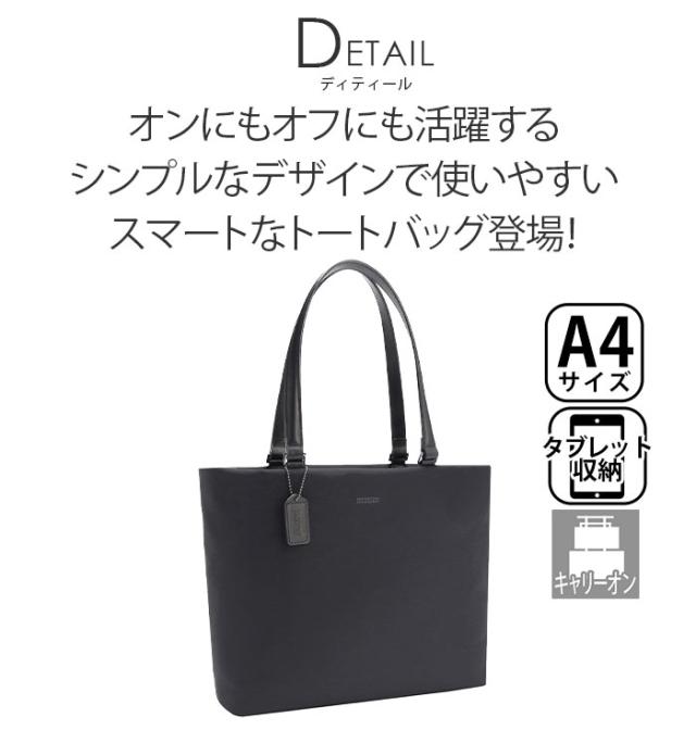 | この商品について | シンプルなデザインと、デジタルツールの持ち歩きにも対応したスマートな機能性が特徴の『ミア』シリーズ。 毎日の通勤スタイルをはじめカジュアルなオフスタイルにも合わせられるトートバッグです。 A4ファイルが入る大きさの普段使いにちょうどいいサイズ感。 ダブルファスナー開閉式のメインルーム内には、書類や小物類の収納出来るポケットとペットボトルや折りたたみ傘等が収納可能なボトルホルダー付き。 11.0インチクラスのタブレットが収納可能なクッションポケットを搭載。様々なサイズで使いやすさを考えられたポケットが充実しています。 スーツケースなどのハンドルに固定できるセットアップベルトを搭載。底面に汚れが付きにくい底鋲付き。 手持ちでも、肩掛けでも使える長めのハンドルは、荷物を取り出す時は完全に倒れるので物の出し入れが楽にできます。 オンにもオフにも使える上品でスタイリッシュなデザインのトートバッグです。 |