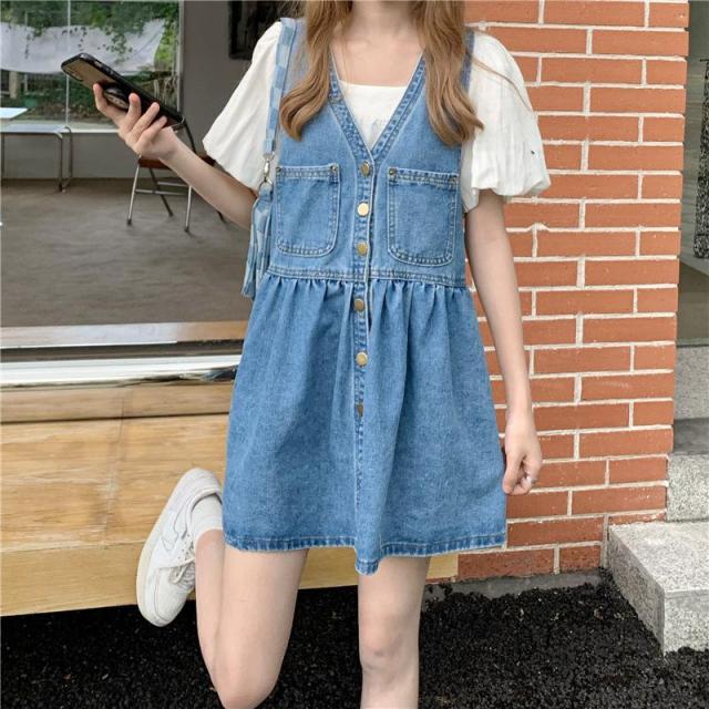 ワンピース ジャンパースカート デニムジャンスカワンピース レディース オールインワン デニムジャンパースカートサロペット