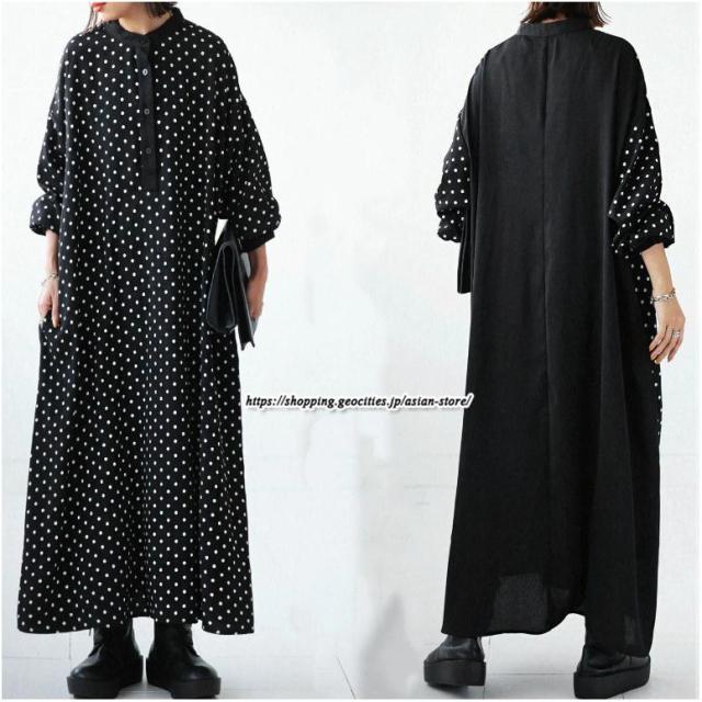 ドッキングワンピース 秋ワンピース 長袖ワンピース ドット柄 ワンピース 春秋 シャツワンピース 黒ワンピース エレガント フォーマル 通勤 体型カバー