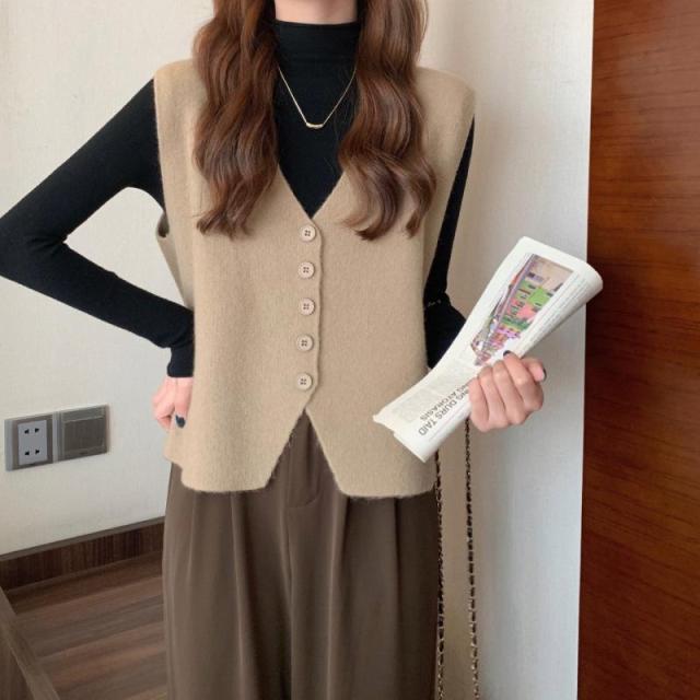 ニットベスト レディース 春秋 ボタン付き カーディガン 羽織り 無地 vネック ベスト 通学通勤 オフィス 大人 20代30代40代50代 ニット セーター