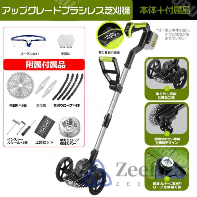 草刈り機 草刈機 充電式 コードレス 9インチ刈払機 ブラシレスモーター 芝刈り機 電動芝刈機 ナイロンカッター 軽量 伸縮可 角度調整可 替え刃7枚付き 枝切り