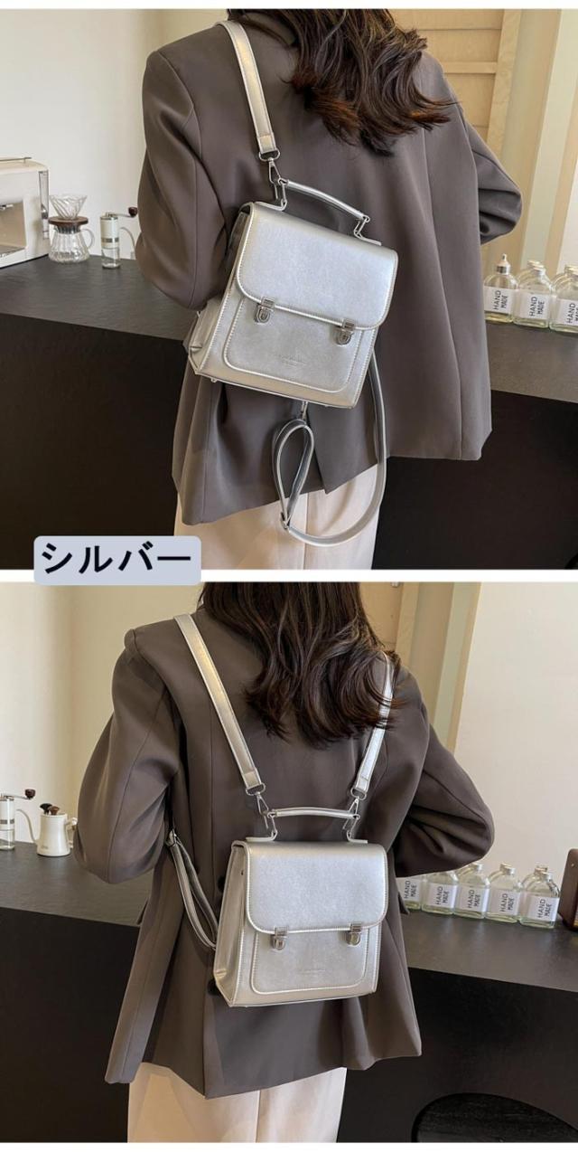 ショルダーバッグ レディース スクエア 四角 バックパック 斜めがけ ユニークおしゃれ トートバッグ 3way 合皮 カジュアル 大容量 通勤 通学大人 仕事 学生 お出かけ デート カバンブラック アイボリー シルバー ブラウン ブルー 韓国風 女性 プレゼント ギフト ja728c0c0m5