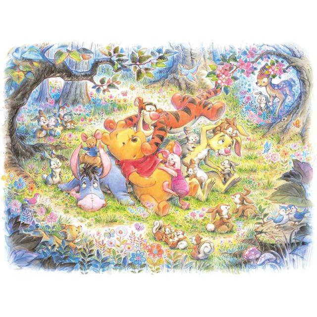 森の動物と遊んで(もらって?)いるプーさんたち。やさしいタッチが魅力的!