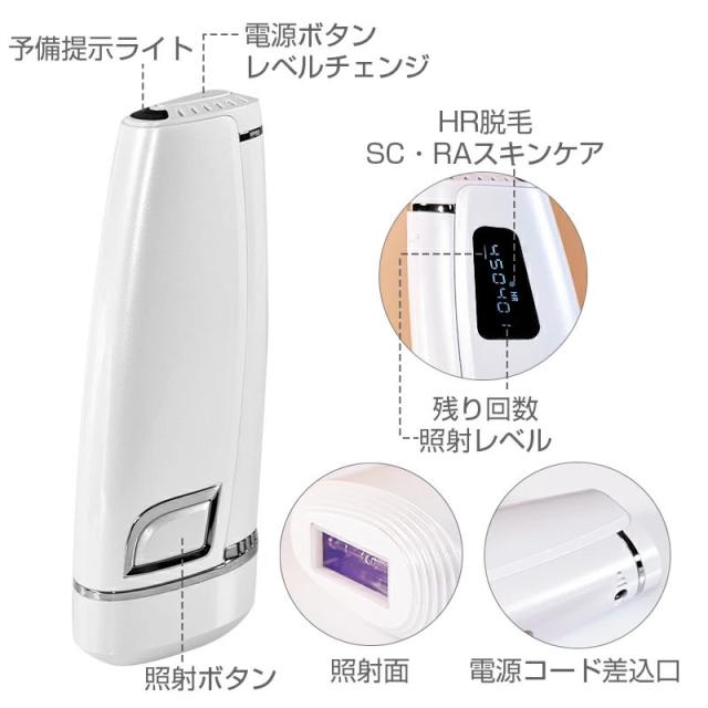 脱毛器 IPL光脱毛器 家庭用 光美容器 美肌機能 交換用カートリッジ付き 5段階調節 手動/自動照射 男女兼用 3つのケアモード 合計60万回照射 液晶表示 保護メガネ付き 肌に優しい