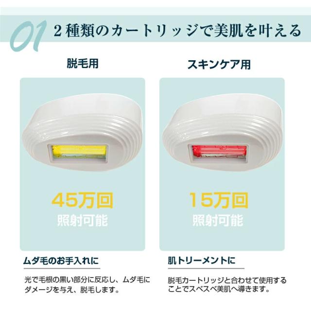 照射カートリッジは脱毛用とスキンケア用の2種類に分かれています。