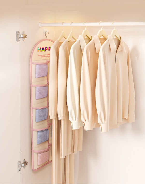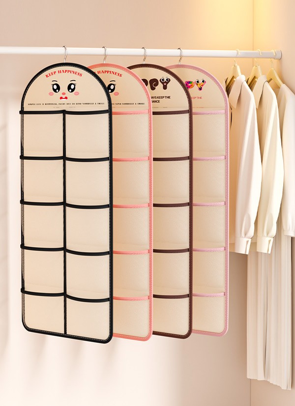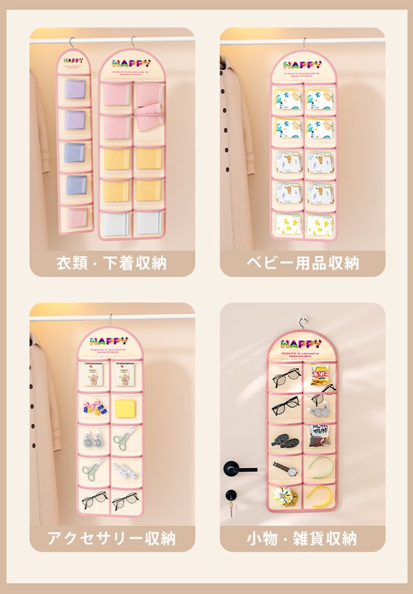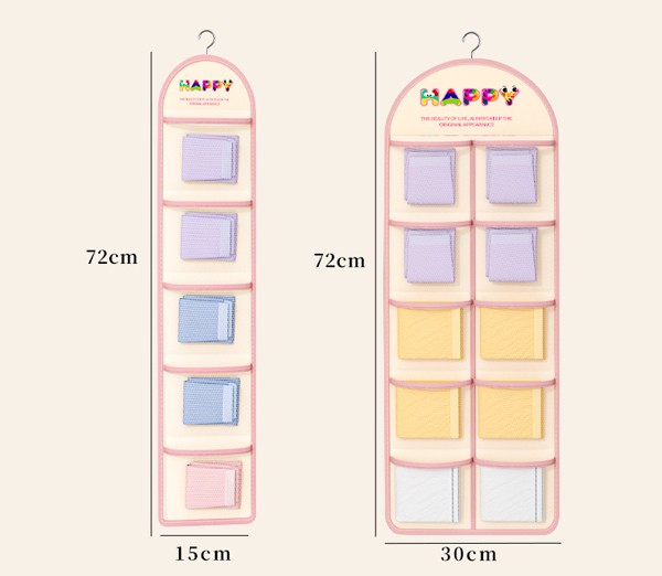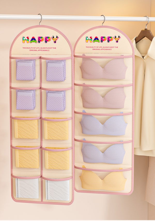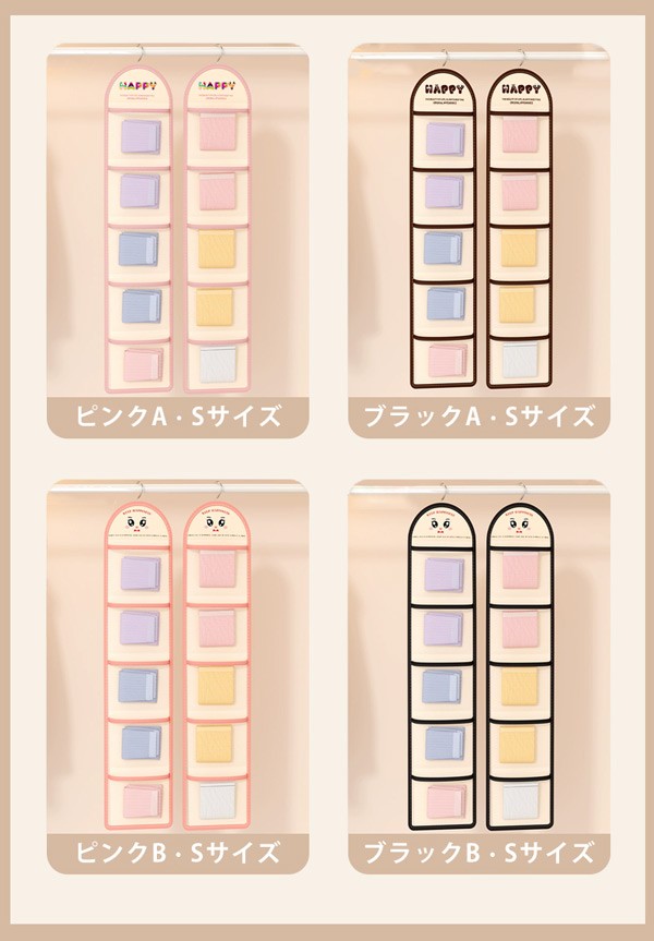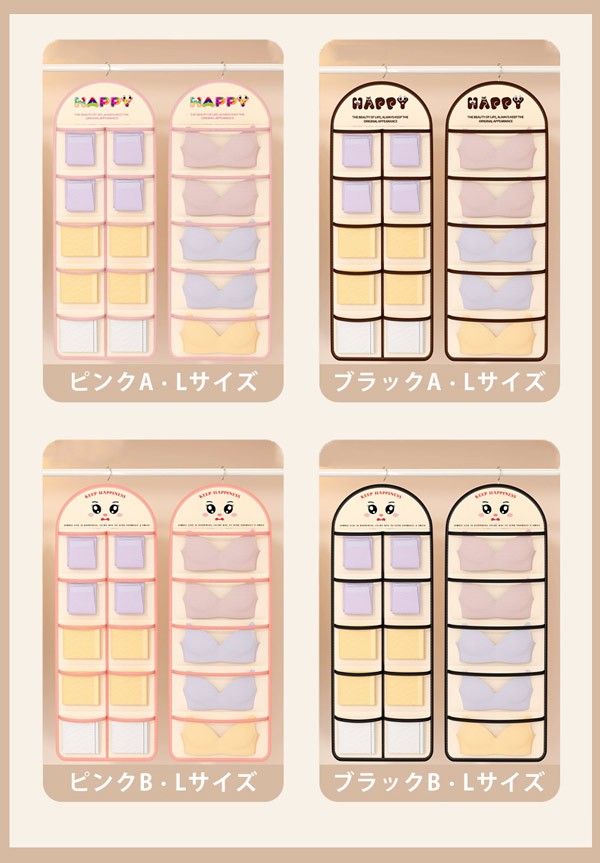 収納ポケット ハンガー式 両面収納 ウォールポケット 下着収納 吊り下げ収納 透明スッキリ収納 下着 靴下 ブラ ショーツ ブラジャー収納 衣類 ハンガーラック 仕切り クローゼット 便利 洗える スリム ブラケース 10・15ポケット ピンク ブラック ベージュ S L k3822m4m4m5