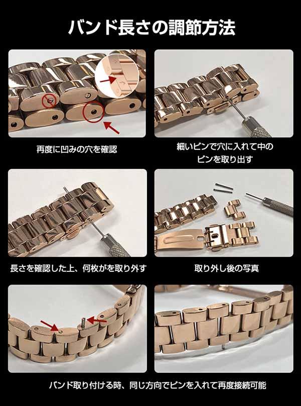 | 特徴 | 【高級ステンレス】高品質なステンレススチール、低金属アレルギー性が高い素材を使用しており、汗などの腐食に強いです! 丁寧仕上げでとても美しく、高級感たっぶり!より落ち着いた大人の雰囲気を演出します。 【簡単装着】簡単な装着も脱着も可能です、専用に作られたファッション性の高い交換用バンド。 【 男女兼用 ・高級感溢れ】シンプルで高級感溢れるデザイン、きれいなカラーは老若男女問わず、通勤・旅行・日常生活の様々なシーンに対応します。お友達や家族にもギフトとしておすすめます。 【商品品質】 商品の管理・品質については万全を期しておりますが、万一ご注文と異なる商品・不良品が届いた場合は 商品到着後7日以内にお問い合わせフォームにてお名前・受注番号などをご記入の上、ご連絡頂いた場合のみ対応となります。 | |||||