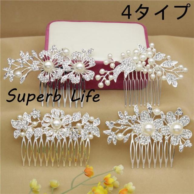 パールとラインストーンを1つ1つ丁寧に嵌め込んだヘアコーム。