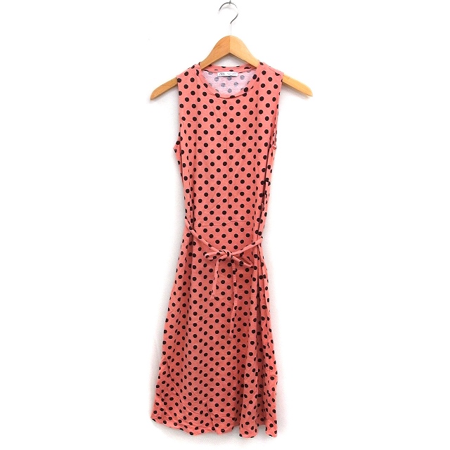 【中古】ザラ ZARA ドット柄 ロング ワンピース ノースリーブ 丸首 リボン コットン 綿 S ピンク /FT24 レディース