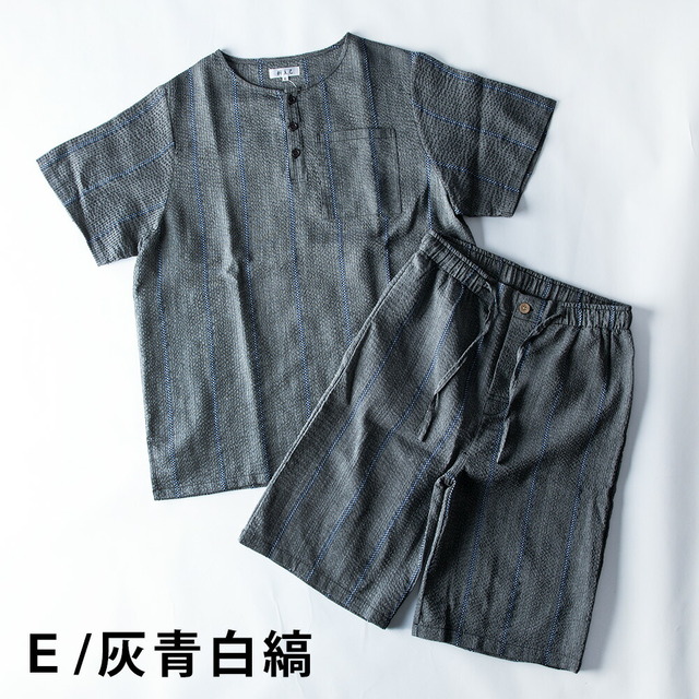 パジャマ 部屋着 ルームウェア メンズ 上下セット ヘンリーネック しじら織 夏 tシャツ ハーフパンツ 短パン 涼しい 無地 ゴムウエスト 総柄 和服 シンプル ストライプ