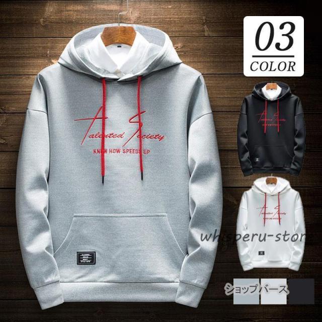 パーカー メンズ 長袖パーカー フード付き 英文柄 刺繍 カジュアル 防寒 トップス 暖かい 秋服 通勤 通学 体型カバー ジップアップ おしゃれ