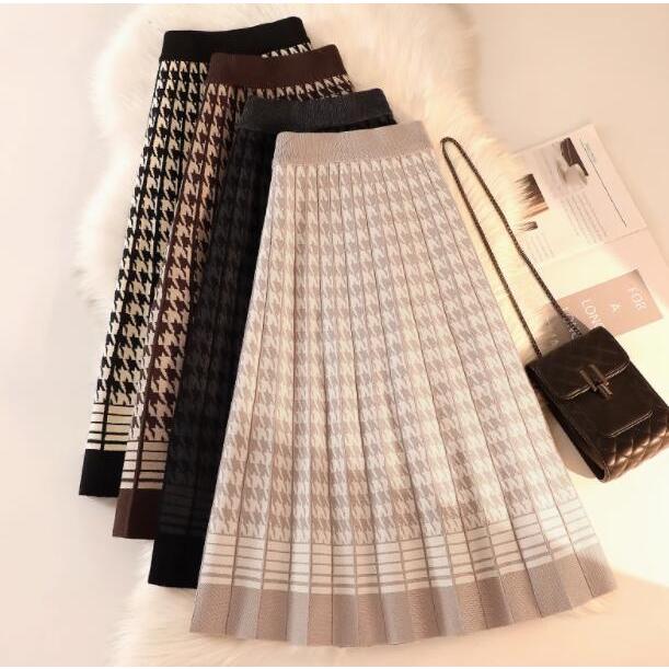 スカート レディース ブラック ベージュ ミモレ ニット 柄 タイル柄 落ち感 おしゃれ きれいめ 高貴な佇まいに プリーツ風ニットスカート OTONA 40代 50代 60代