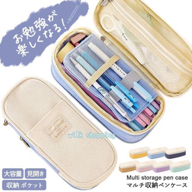 筆箱 小学校 中学 女子 シンプル 大容量 仕切り 使いやすい 無地 チャック ペンケース 筆箱