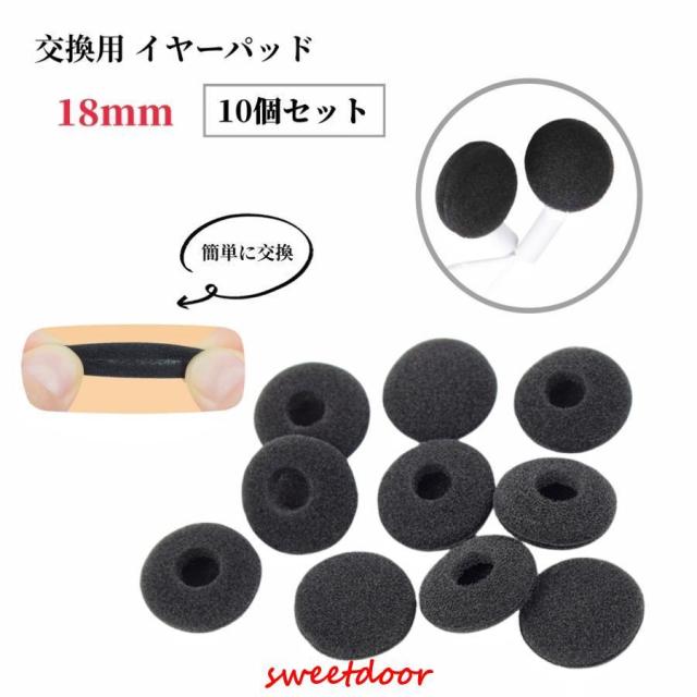 イヤーパッド 10個セット イヤホン イヤークッション カバー スポンジ 交換用 18mm 黒 ブラック 替え 柔らかい フィット オーディオ