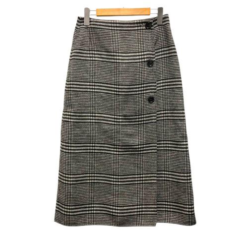 【中古】グリーンレーベルリラクシング ユナイテッドアローズ ラップスカート Aライン グレンチェック ロング丈 38 黒 グレー レディース