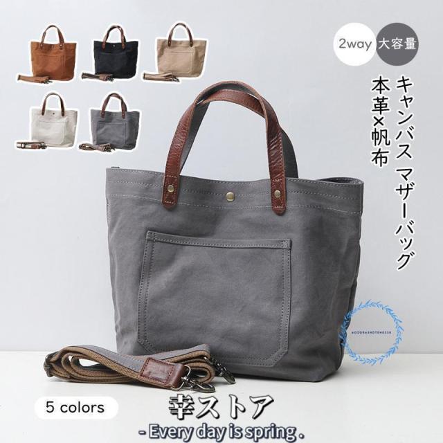 本革 帆布 2way トートバック ショルダー 肩掛け マザーズバッグ ヌメ革 レザー キャンバス マザーバッグ 大きめ 大容量 A4 レディース