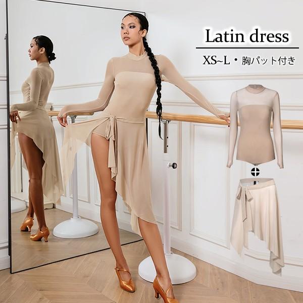 社交ダンス ラテンドレス チャチャチャ 透け感 セクシー キャバ 練習服 スタンダード 競技着 練習着 演出 七分袖 発表会 団体 サルサダンス