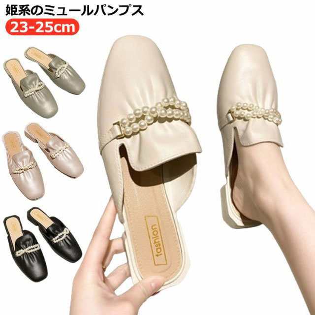 パンプス ミュールパンプス サンダル レディース ローヒール かかとなし パンプス ミュールサンダル 通勤 靴 スクエアトゥ 外履きスリッパ 夏 春 パール 歩きやすい 疲れない OL 姫系 韓国ファッション おしゃれ