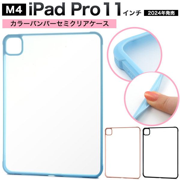 iPad Pro 11インチ(M4/2024年発売)用 カラーバンパーセミクリアケース。カラーバンパーセミクリアケース 背面はPC、側面にはTPUを使用したカラーバンパーセミクリアケース!PCケースはiPad本体の色を活かせるクリア仕様。指紋が目立たないマットな質感です。カメラや充電、各種ボタン操作はケースをつけたままでも操作可能です。ケース側面はTPU素材なのでやわらかく、取り外しも簡単!ケース背面は硬めのPC素材なので、しっかりと本体を保護します。コーナーまでしっかりガード!iPadへの衝撃を軽減します。ブラック/ピンク/ライトブルーの3色からお選びいただけます。
