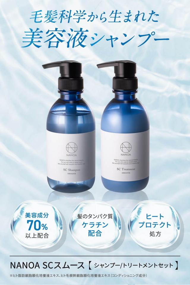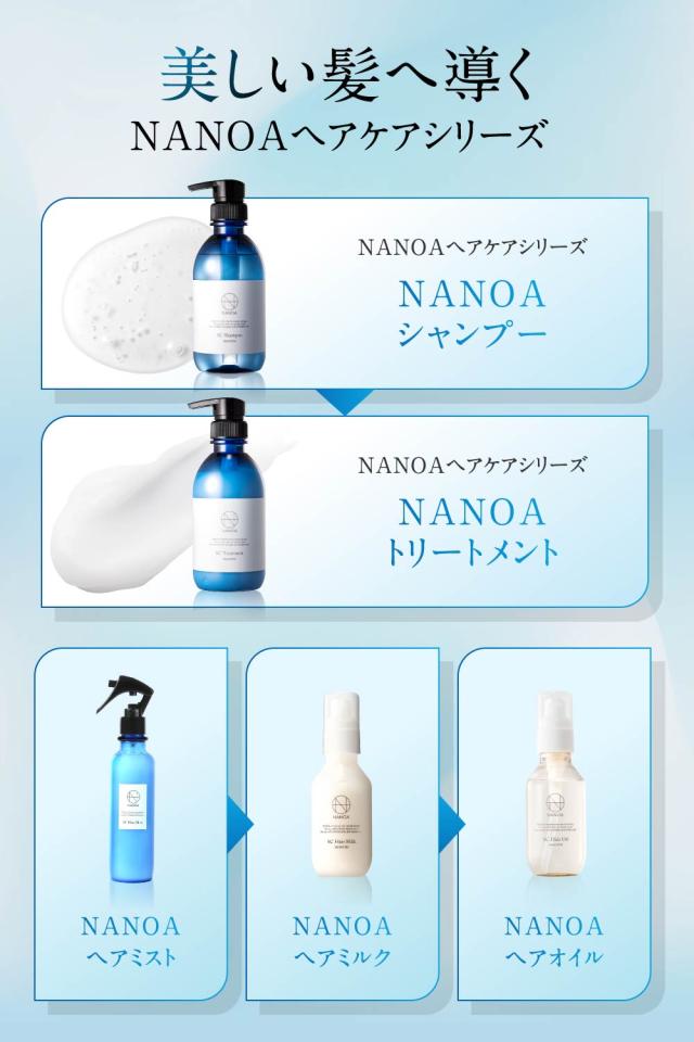◆ 【スキンケア発想から生まれた髪の美容液シャンプー】NANOAシャンプートリートメントセットは、髪のパサつきを抑え、髪のまとまり、指通りに着目したプレミアムシャンプー・トリートメントです。