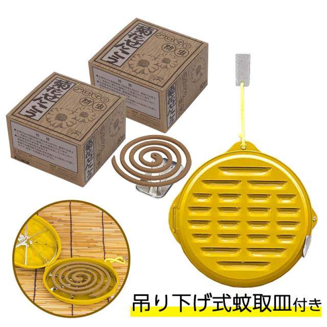 りんねしゃ 菊花せんこう 30巻入 2箱 + 大型安全線香皿 ブラリー 1個セット 吊り下げ式 日本製 蚊取り線香 アウトドア 農作業 畑 児玉兄弟商会