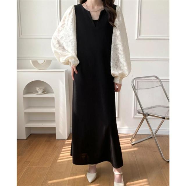 ワンピース レディース 春物 秋物 夏物 レースワンピース レース切り替えワンピース