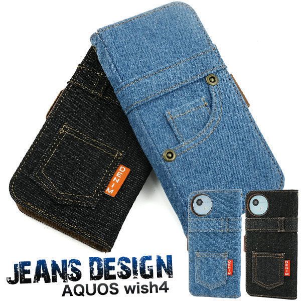 AQUOS wish4 ケース SH-52E A402SH 手帳型 ジーンズデザイン デニム カバー アクオスウィッシュ4 保護カバー アクオスwish4 アクオス ウィッシュ4 スマホケース