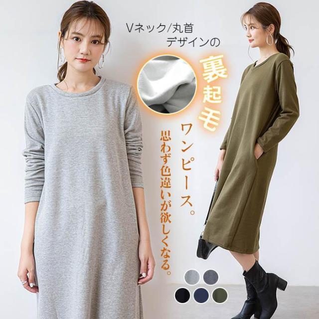 ワンピース 裏起毛ワンピース ロングワンピース 長袖 パジャマ 部屋着 パーカーワンピース 体型カバー レディース 秋 冬 vネック 丸首 裏起毛 40代